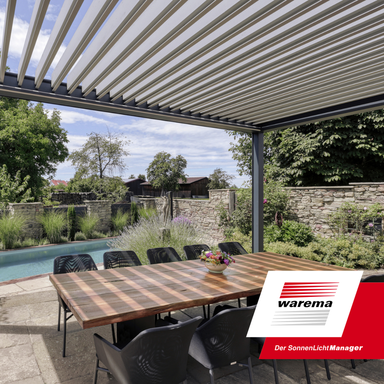 Das absolute Highlight! Lamellendächer, in den meisten Regionen Baugenehmigungsfrei, von Warema macht jeden Besucher neidisch. Präzise Eleganz aus Wertheim, wird auch Sie überzeugen! Machen Sie ihren Garten zu einer wahren Oase und bekommen Sie ein ganz neues Lebensgefühl....